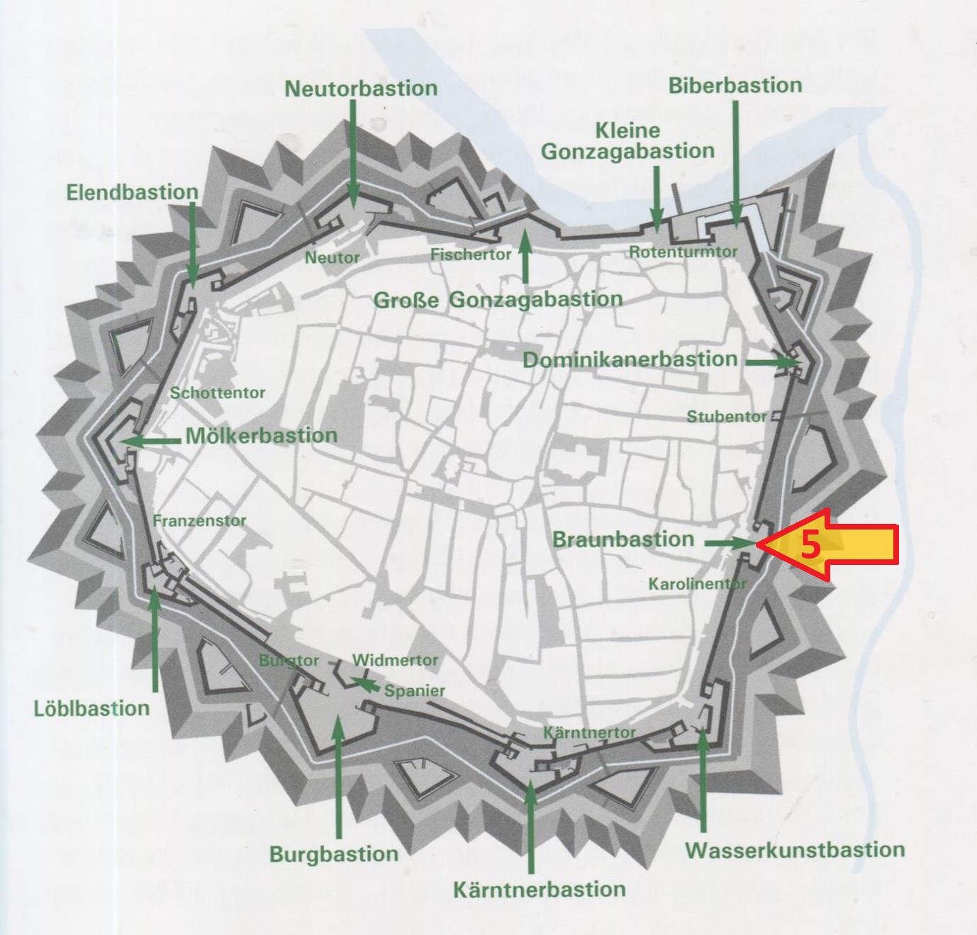- ↑ Karin Fischer Ausserer: Mauern um Wien, die Stadtbefestigung von 1529 bis 1857, Stadt Archäologie, 2014, Wien, ISBN 978-3-85161-074-1, S. 63 ff.9