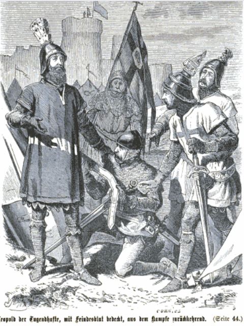 In genau dieser Schlacht jedoch soll der weiße Waffenrock von Leopold V. mit Blut durchtränkt gewesen sein, und als er seinen Gürtel abnahm, war genau an dieser Stelle noch eine weiße Stelle vorhanden. Da der Herzog im Kampf sein Banner mit dem schwarzer Panther auf silbernem Grund verloren hatte, genehmigte ihm der Kaiser (Heinrich VI), anstelle dessen das rotweißrote Kleidungsstück als neues Banner zu verwenden. So entstand die österreichische Flagge.